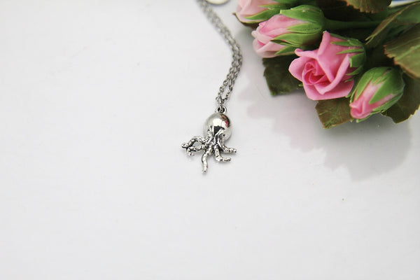 This is a silver-tone octopus charm on a chain. You able to choose as a necklace, bracelet bangle or key chain.