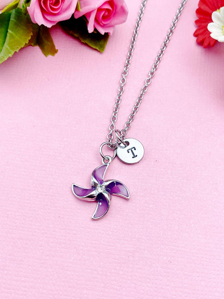 Pinwheel Necklace, Gold or Silver Beautiful Purple Pinwheel Necklace, Windmill Toy, Birthday Gift, N5171A