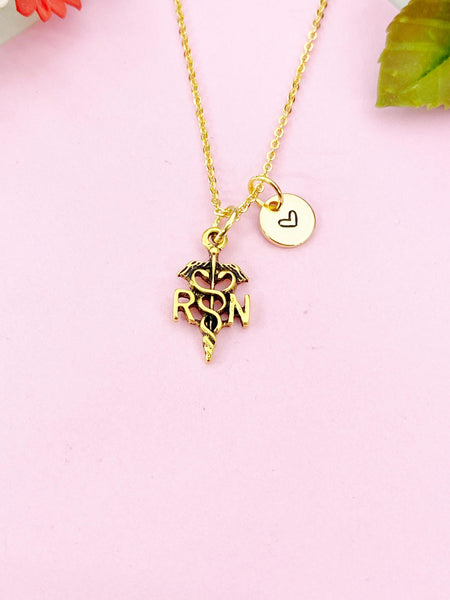 Registered Nurse RN Charm Gold Necklace, N6150