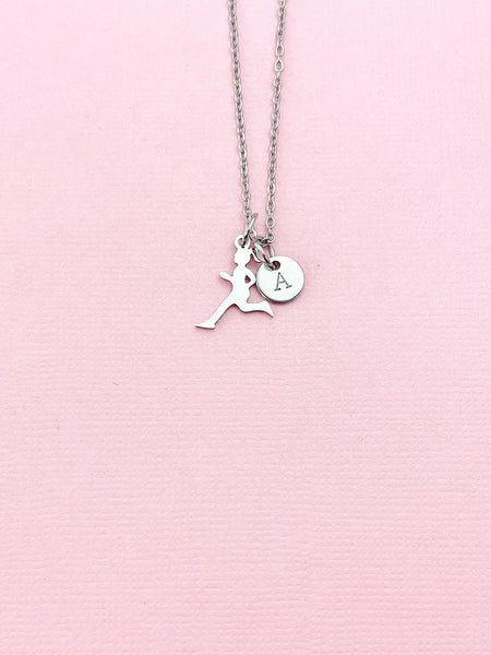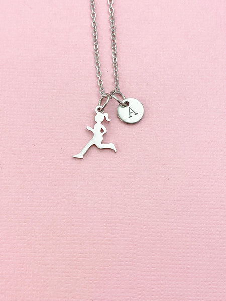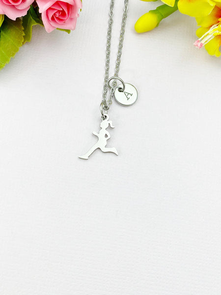 This is a silver -tone running charm with hand stamped initial charm on brass/stainless steel 18 inches chain or bracelet or keyring.
