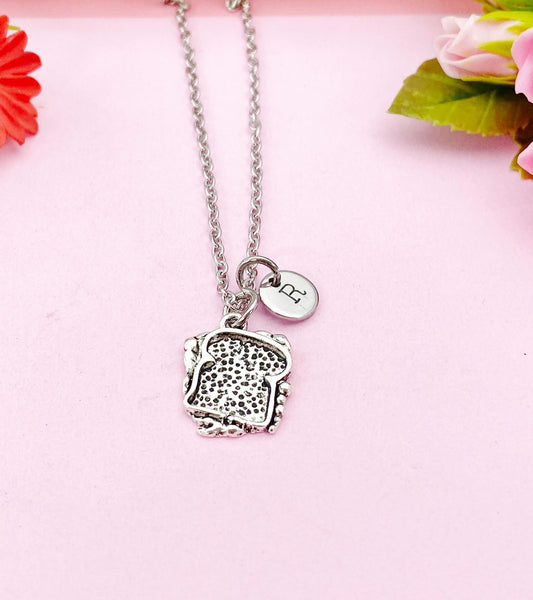 This is a silver-tone sandwich charm with hand stamped initial charm on brass/stainless steel chain.