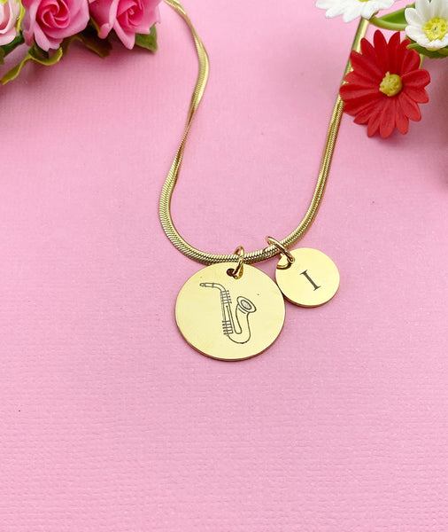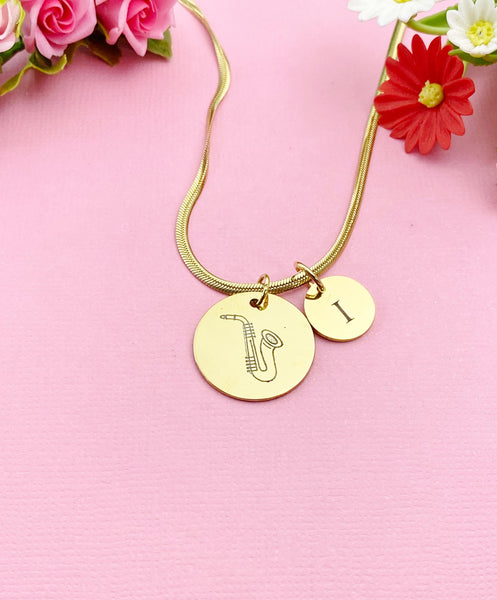 This is a unique engraving Saxophone and initial charm on stainless steel 18 inches necklace chain