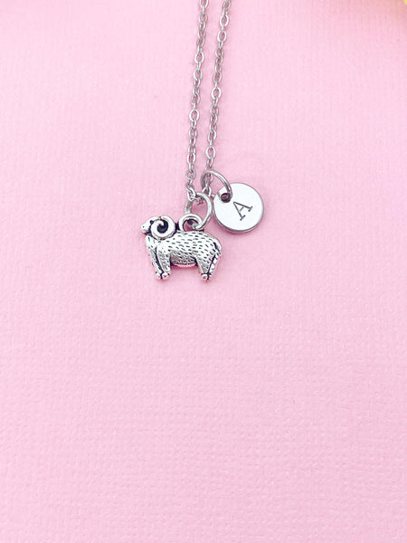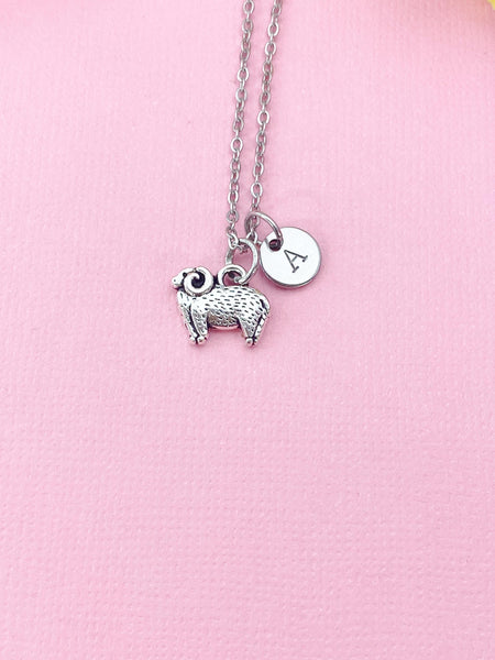 This is a silver -tone sheep charm with hand stamped initial charm stainless steel 18 inches chain or bracelet or keyring.