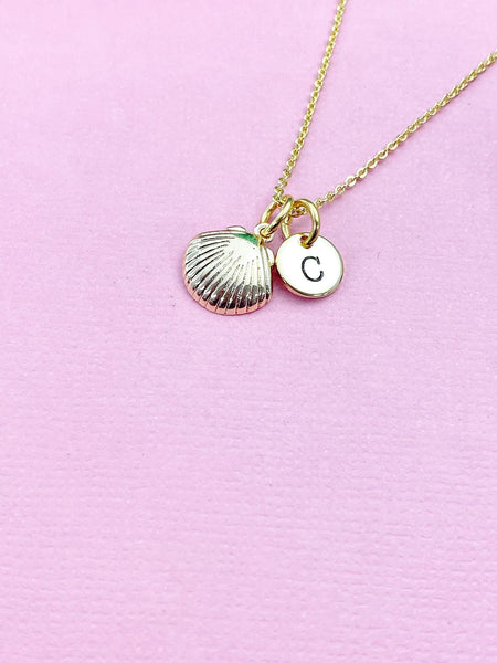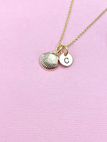 This is a gold tone shell charm on brass or stainless-steel chain.
