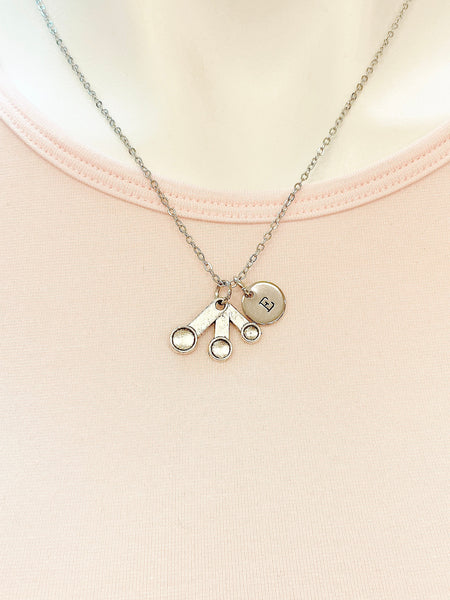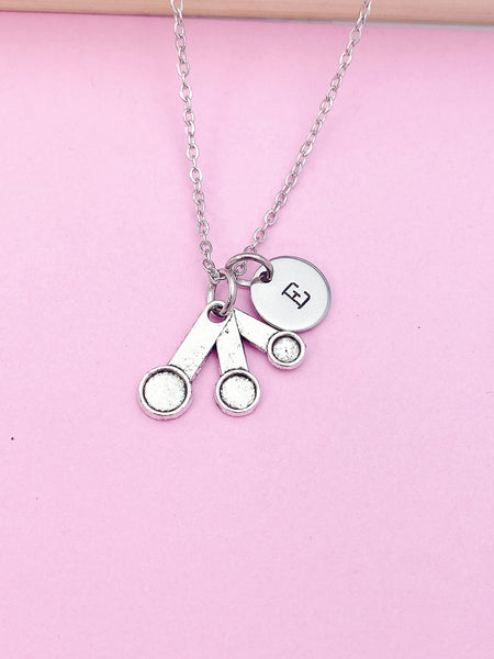 Silver Baker Measuring Spoon Charm Necklace Gift Ideas Personalized Customized Monogram Made to Order Jewelry, N103