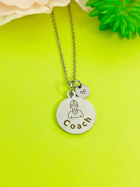 This is an engraving Coach on stainless-steel with hand stamped initial charm on stainless steel necklace.