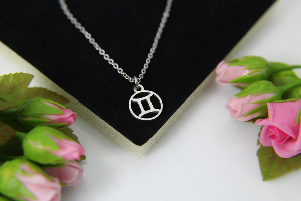 This is a silver-tone stainless steel Gemini charm on a stainless steel chain. (Hypoallergenic). You able to chose as a necklace, bracelet bangle or key chain.