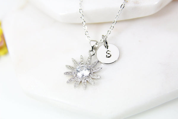 Silver Gold or Rose Gold Daisy Flower Charm Necklace Gift Ideas Personalized Customized Made to Order Jewelry, N5470
