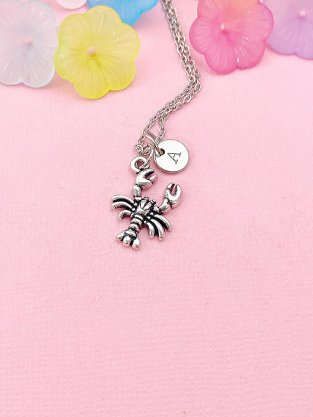 This is silver-tone lobster charm with hand stamped initial charm stainless steel 18 inches chain or bracelet or keyring.