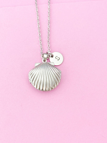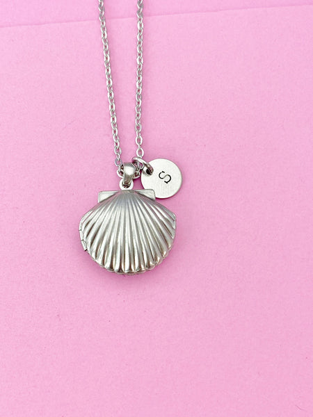 Silver Scallop Shell Locket Necklace, Mermaid Seashell, N5127