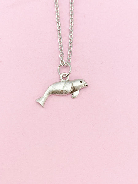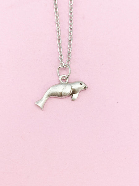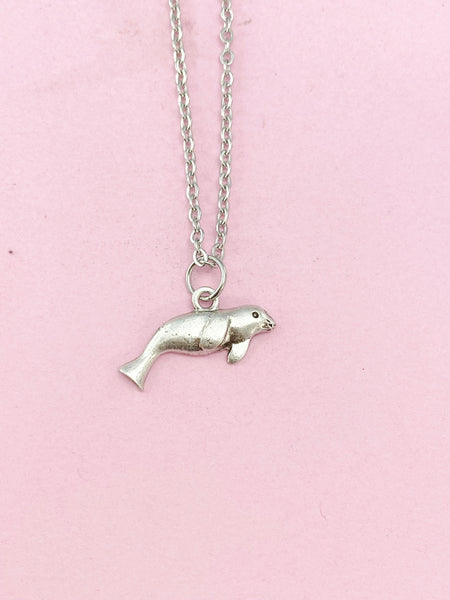This is a silver tone seal charm on stainless steel 18 inches chain.