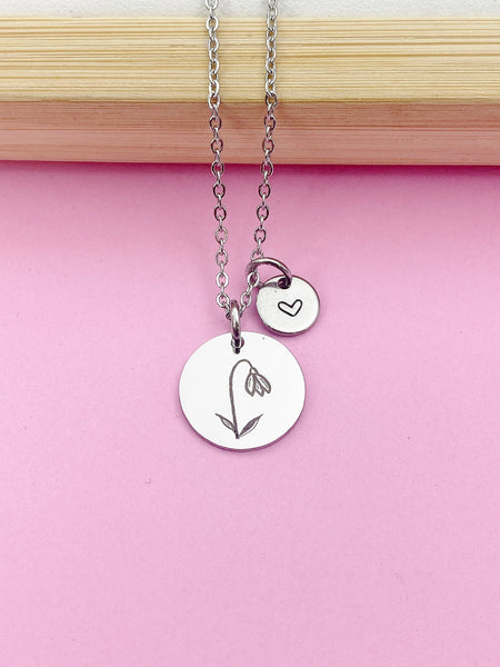 Silver Snowdrop Flower Charm Necklace Personalized Customized Monogram Made to Order Jewelry, N3826A
