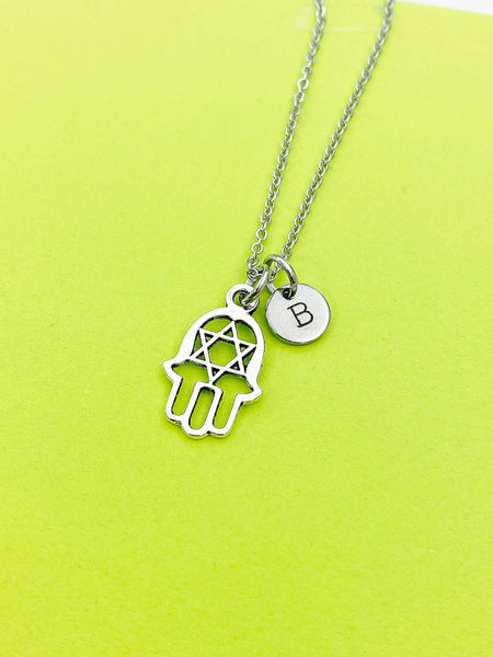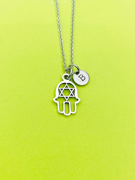 Silver Star of David Hand Charm Necklace Personalized Customized Monogram Made to Order Jewelry, N80D