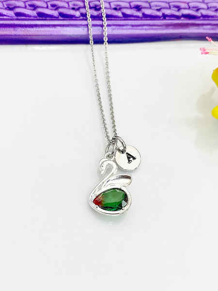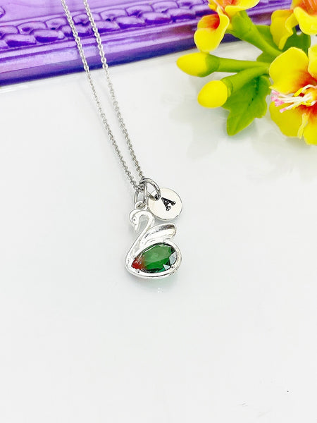 Silver Swan Necklace, Beautiful Bird Swan Charm, Personized Initial Necklace,