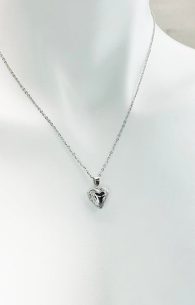 Silver Tiny Heart Locket Necklace, Best Valentine Gift, Delicate Necklace, Dainty, Simple, Minimalist, Silver Chain Necklace,