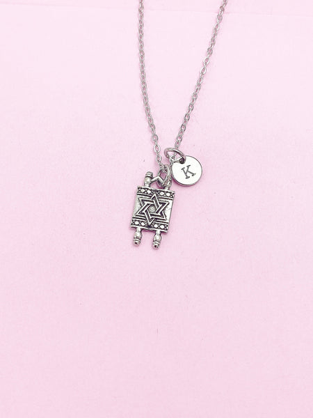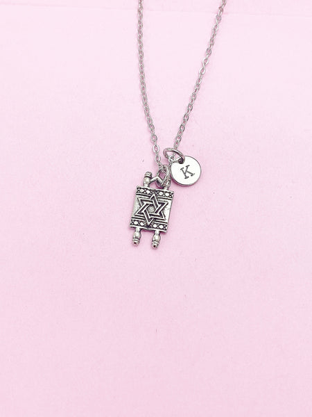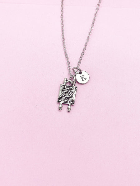 Silver Torah Scroll Star of David Charm Necklace, AN373