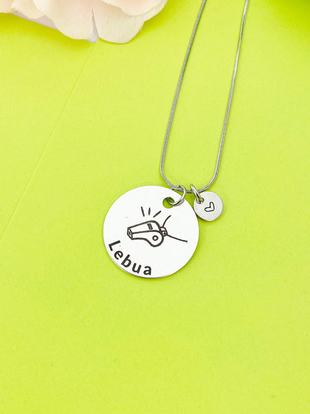 Silver Whistle Necklace, Best Christmas Gifts for Coach, Name, Personalized Customized Monogram Jewelry, D163