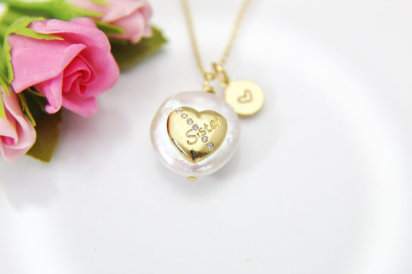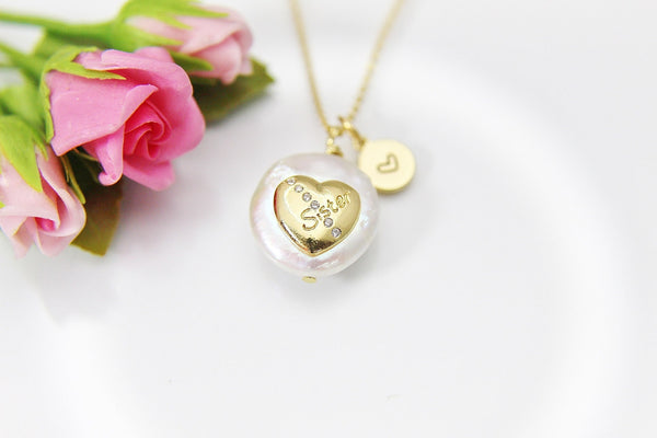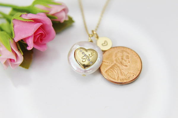 Sister Necklace, Gold Cultured Pearl Heart, Birthday Gift, Graduation Gift, Christmas Gift, Thank You Gift, Appreciation Gift,