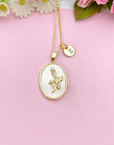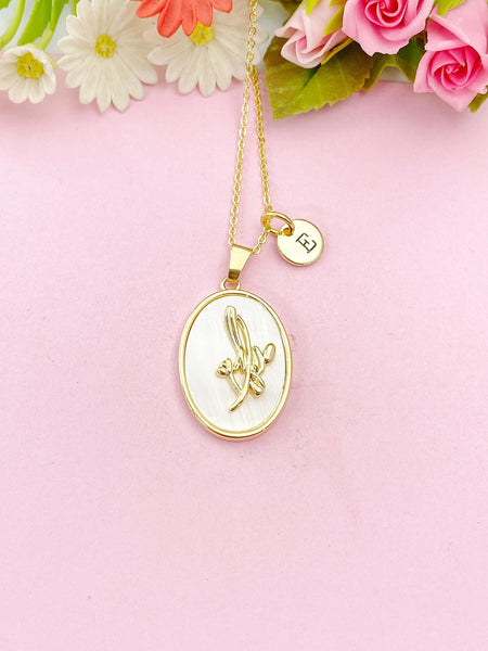 This is a gold -tone Snowdrop Flower charm with hand stamped initial charm on brass/stainless steel 18 inches chain.