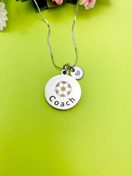This is an engraving soccer coach on stainless steel charm with hand stamp initial charm on Tarnish Resistant stainless steel 18 inches necklace chain