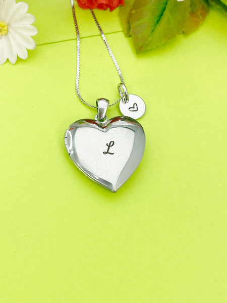 Stainless Steel Heart Locket Necklace, Personalized Customized Monogram, D363