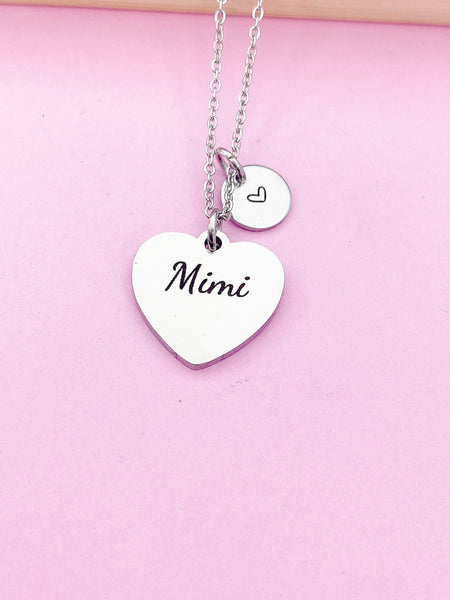 This is an engraving Mimi on stainless-steel with hand stamped initial charm on 18 inches chain.