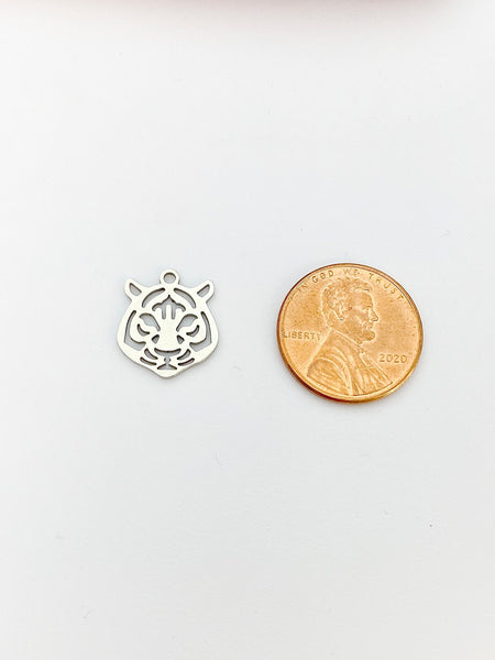 ♥ Tiger Charm, 201 Stainless Steel Pendants, Stainless Steel Color, Size: about 0.59 inch(15mm) long, 0.51 inch(13mm) wide, 0.04 inch(1mm) thick,