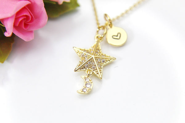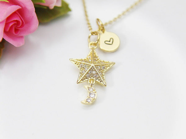 Star Moon Necklace, 18K Gold Plated Moon Star, Birthday Gift, Graduation Gift, Christmas Gift, Thank You Gift, Appreciation Gift,