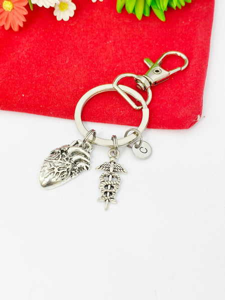 Anatomy Heart Caduceus Keychain Cardiologist Medical School Student Gifts, Personalized Customized Jewelry Gifts, N5283