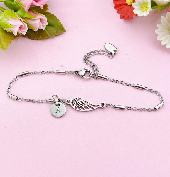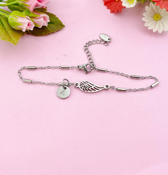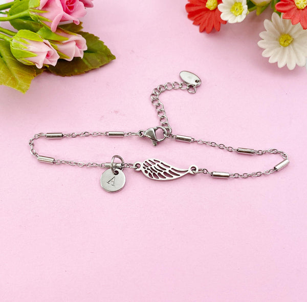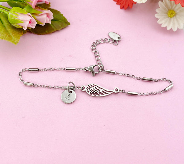 Angel Wings Charm Silver Bracelet, Guardian Angel Jewelry, Tarnish Resistant Stainless Steel Wing Pendants, N6285