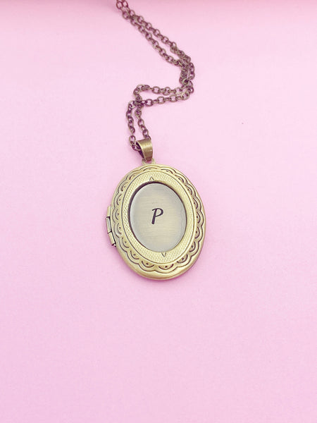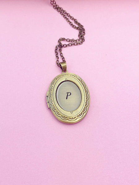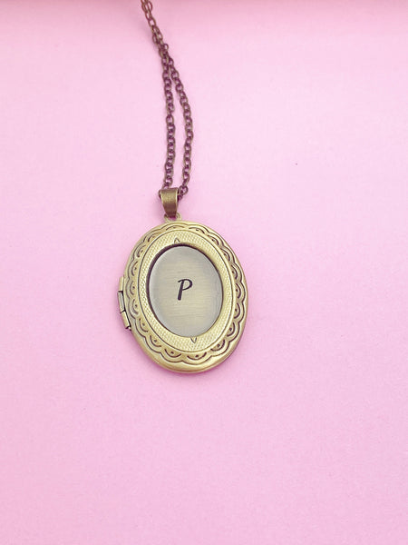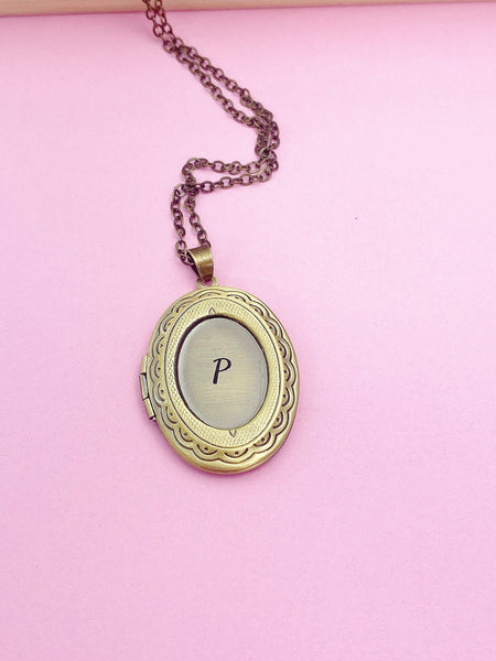 This is a unique engraving initial on antique bronze(color) oval locket charm on 24 inches necklace chain. I do not put the photo to the locket.