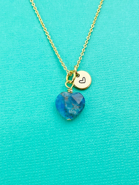 This is a Natural Apatite Pwith hand stamped initial charm on brass/stainless steel chain.