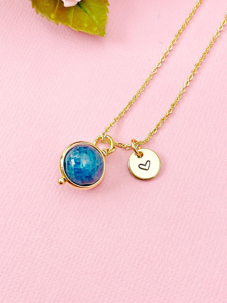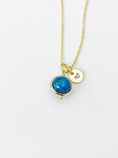 This is a Natural Apatite Pwith hand stamped initial charm on brass/stainless steel chain.