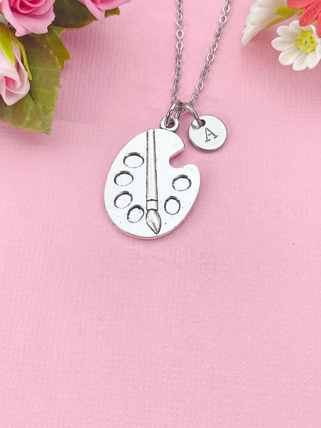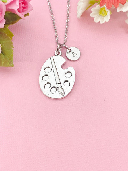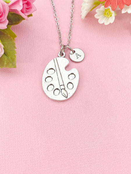 This is a silver -tone Artist Palette charm with hand stamped initial charm stainless steel 18 inches chain or bracelet or keyring.