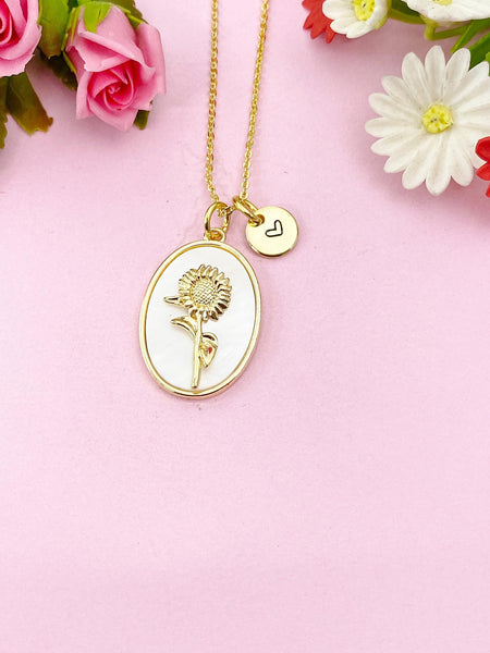 This is a gold -tone Aster September Birth Flower charm with hand stamped initial charm on brass or stainless-steel chain.