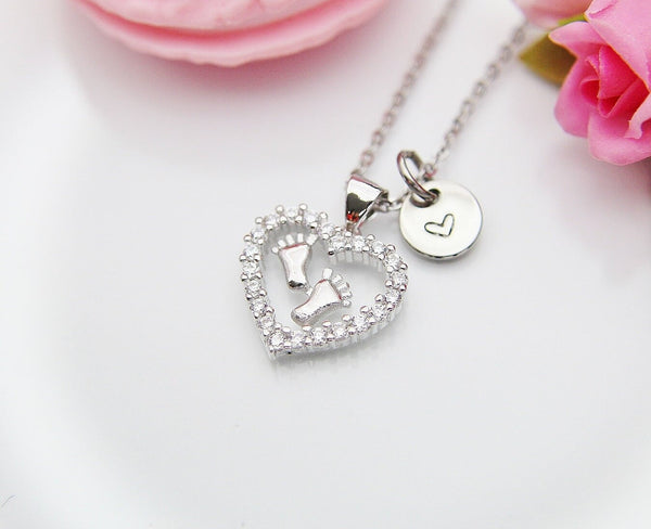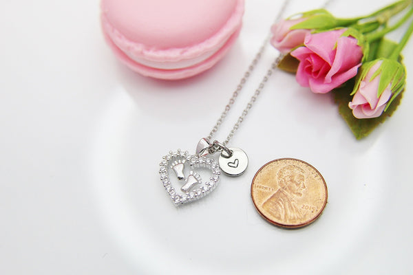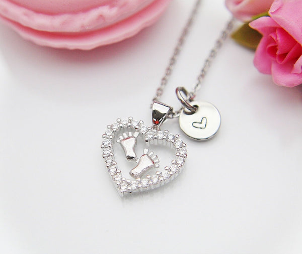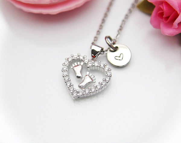 Heart Baby Foot Print Necklace, Christmas Gift, Thank You Gift, Mom Gift, Aunt Gift, Sister Gift, Daughter Gift, Niece Gift,