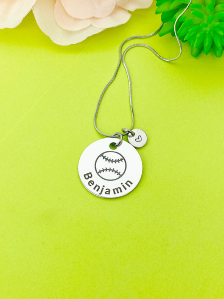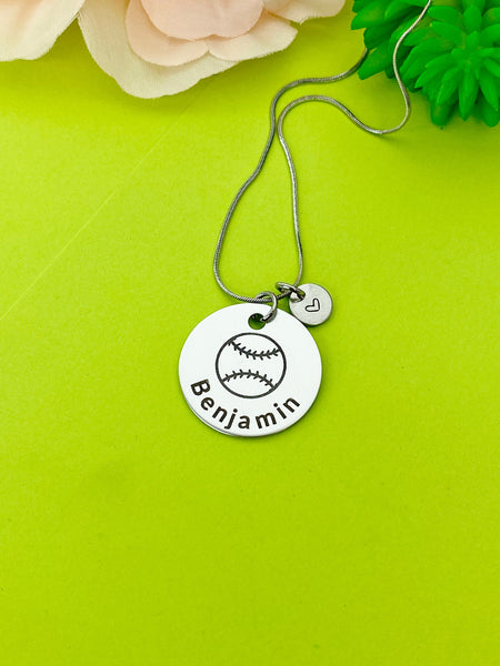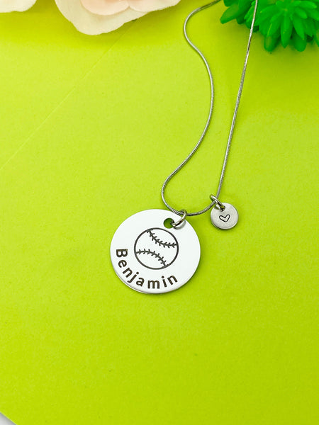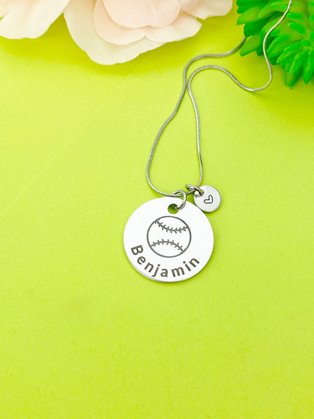 This is an engraving Baseball Ball and Name on stainless-steel or aluminum with hand stamped heart charm on stainless steel bangle or necklace or split key ring optional.