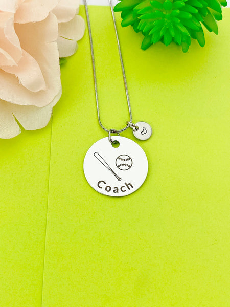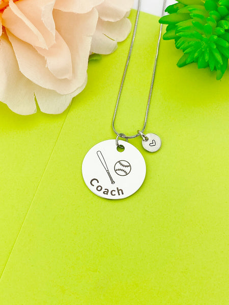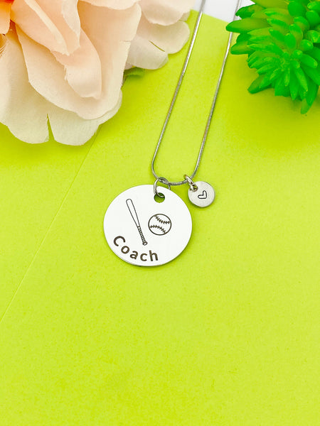 This is an engraving Baseball Coach on stainless-steel or aluminum with hand stamped heart charm on stainless steel bangle or necklace or split key ring optional.