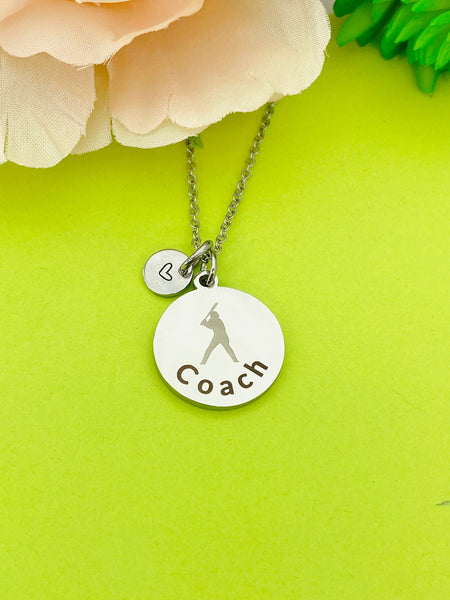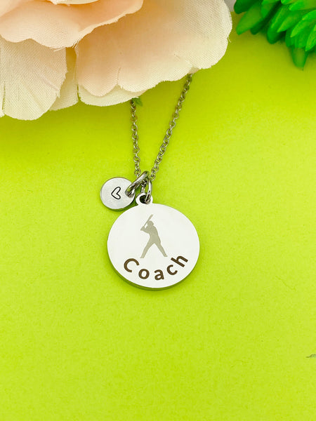 This is an engraving Baseball Coach on stainless-steel with hand stamped initial charm on 18 inches chain.