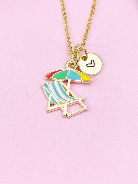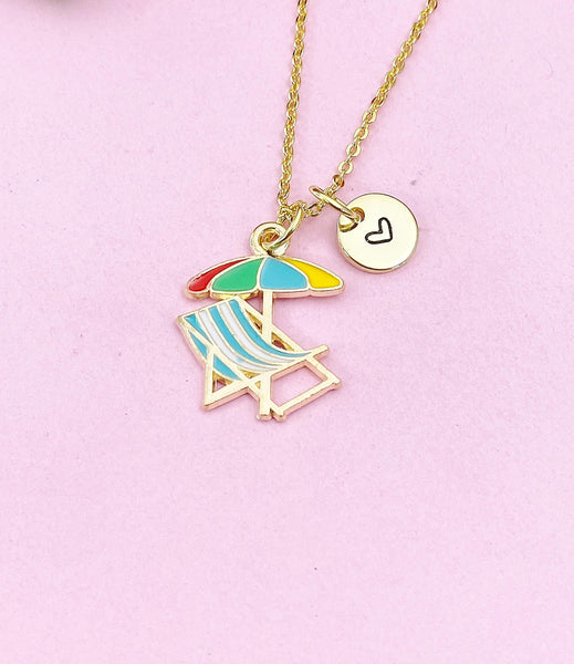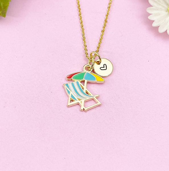 Beach Chair Umbrella Charm Gold Necklace, Beach Summer Vacation Jewelry Gift, N6260