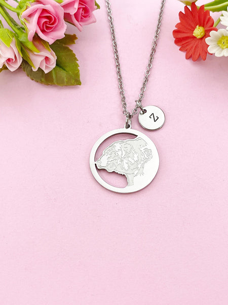 This is a silver tone bear charm with hand stamped initial charm on brass/stainless steel chain.