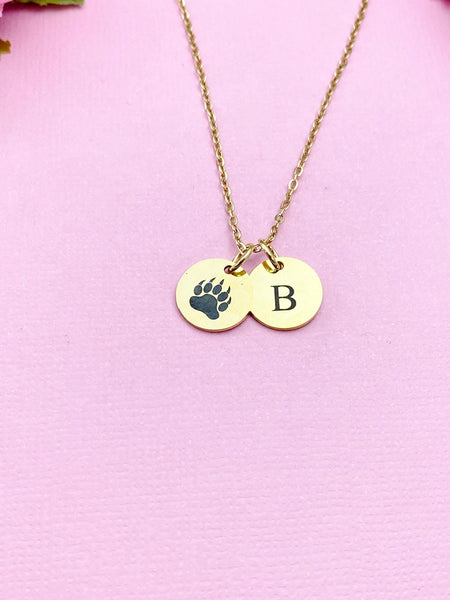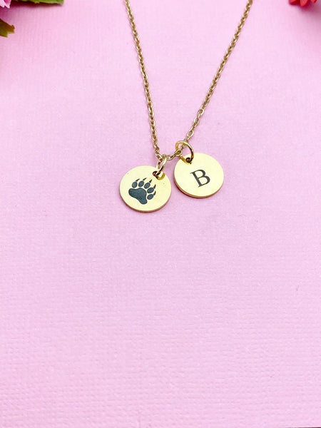Bear Footprint Charm Gold or silver Necklace, Paw, D475