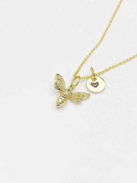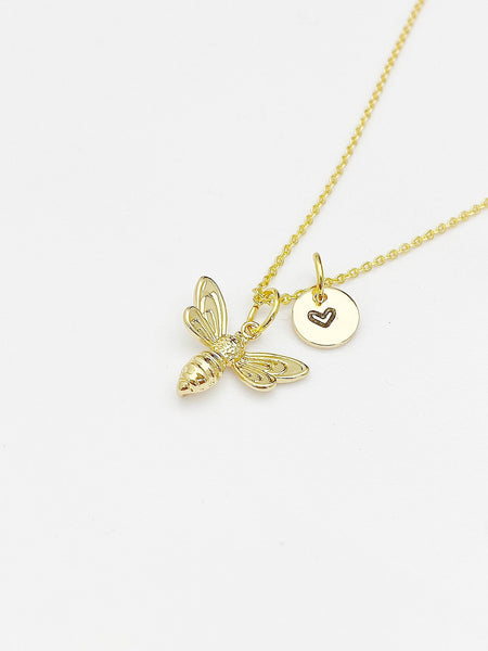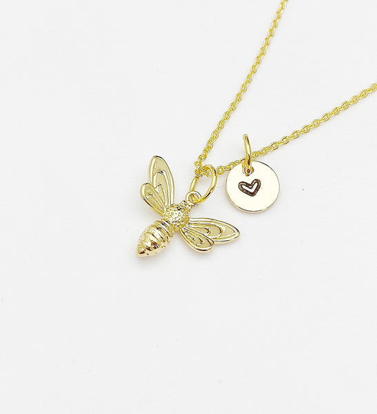 Bee Necklace, Gold Bee Necklace, Girlfriends Gift, Birthday Gift, Personized Initial Necklace,