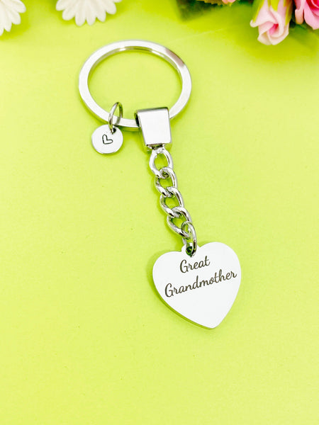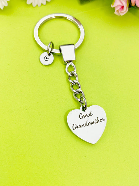 Best Christmas Gift for Great Grandmother, Great Grandmother Keychain, Grandmother Jewelry, Personalized Customized Monogram Jewelry, D318B