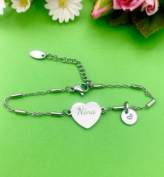 Best Christmas Gift for Nina, Nina Bracelet, Stainless Steel Heart Bracelet, Best Nina Jewelry, Personalized Gifts, D267