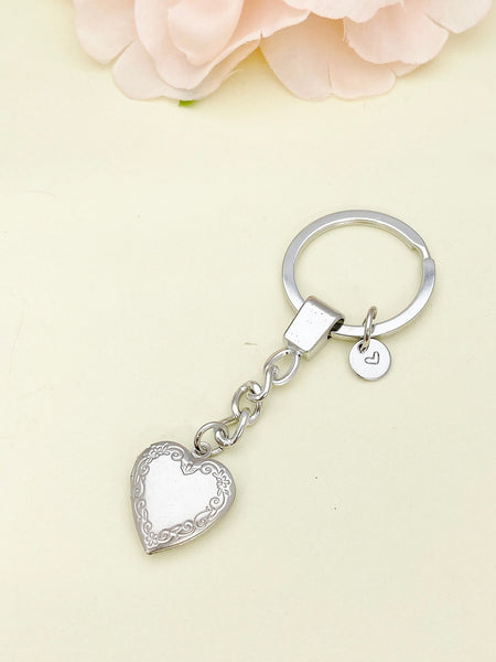 Best Christmas Gift Silver Heart Flower Locket Pendant Keychain, Love, Keepsake Photo Frame Charm, Stainless Steel Initial Keychain,