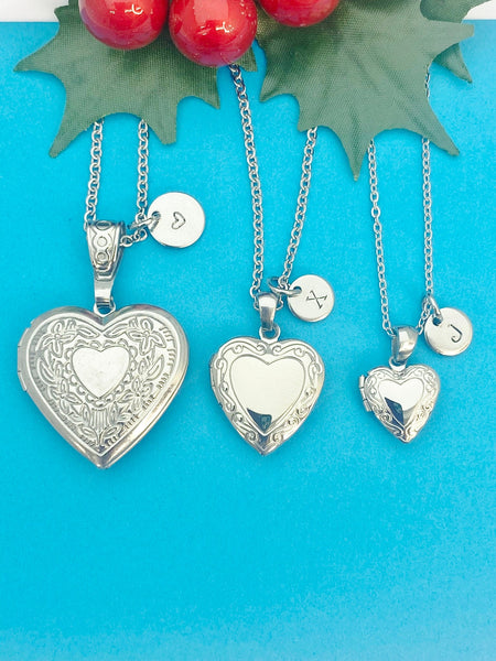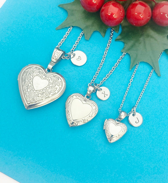 Best Christmas Gift Silver Heart Flower Locket Pendant Necklace, Love Necklace, Keepsake Photo Frame Charm, Personalized Customized,