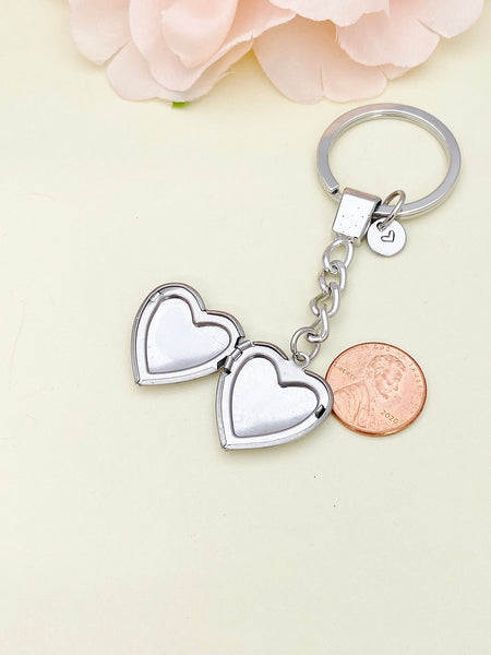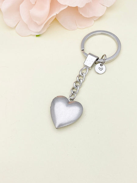 Best Christmas Gift Silver Heart Locket Pendant Keychain, Love, Keepsake Photo Frame Charm, Stainless Steel Initial Keychain,