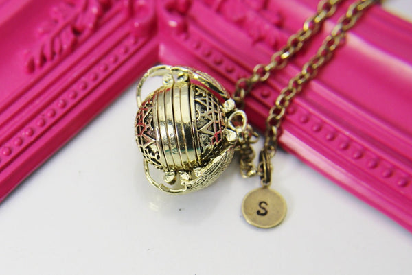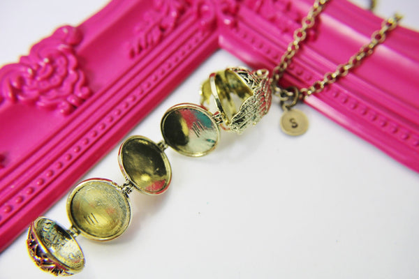 This is a bronze-tone locket charm with hand stamped initial charm on a 24 INCHES chain. *NEED SHORTER CHAIN ADD A NOTE TO SELLER*