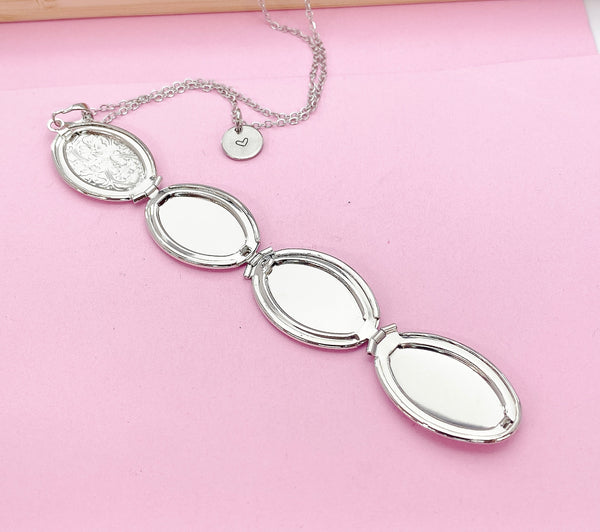 Best Gift for Mom, Great Grandma, Grandmother, Godmother, Sister, Aunt, Flower Locket, Keepsake Photo Frame Charm, Silver Locket, N2143